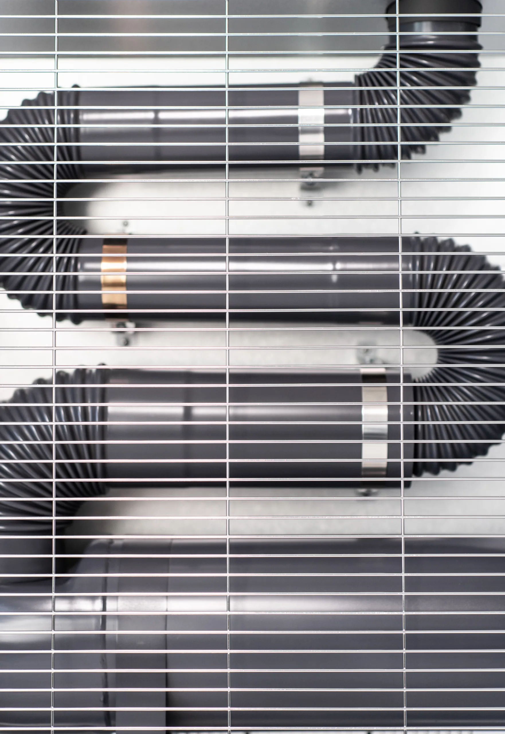 Inside the device there is an advanced oil burner with an electric fuel pump, which circulates the combustion gases through pipelines with ceramic coating, which results in heat being created as infrared radiation. Because of the triple combustion process, combustion is clean and complete – unlike many competing heaters, you don’t need to fit any permanent ventilation tubes into your building – normal ventilation is sufficient. And when the burner is running, the silencing system inside the exhaust pipe means that the Airrex is incredibly quiet – about as loud as a desk fan in normal use.