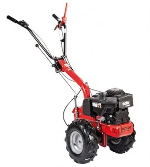 Whether as a bar mower for garden maintenance and meadow grass extraction, as a roller brush for cleaning the yard or street, or as a compact plough – with just a few simple steps you can equip the all-rounder with the right attachment and carry it out efficiently and effortlessly. The high engine power, the switchable wheel drive with forward and reverse gear and the large, all-terrain pneumatic tyres guarantee you easy, safe and posture-friendly guidance of the single-axle vehicle; even in rough terrain, uneven meadows and on difficult to access slopes. The height-adjustable and swivelling guide bar makes operating easy and allows easy manoeuvring even in narrow, winding courtyards and on meadows and field edges.