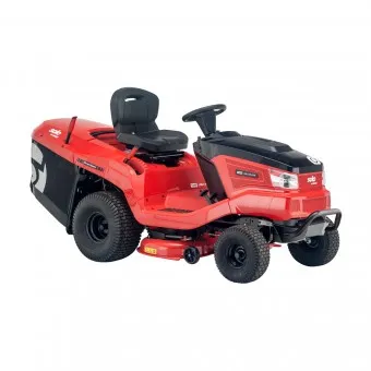 The torsion-resistant and robust C-profile frame, in combination with the ball-bearing, low-vibration mower deck, ensures a long service life for the solo® by AL-KO T22-105.1 HD-A V2. Side-by-side forward and reverse pedals for intuitive driving with hydrostatic transmission. A front bumper and LED headlights are fitted as standard to this tractor whilst the handy electric tip is an optional extras . The comfortable seat can be easily adjusted in steps whilst the 20-inch rear wheels ensure good traction.