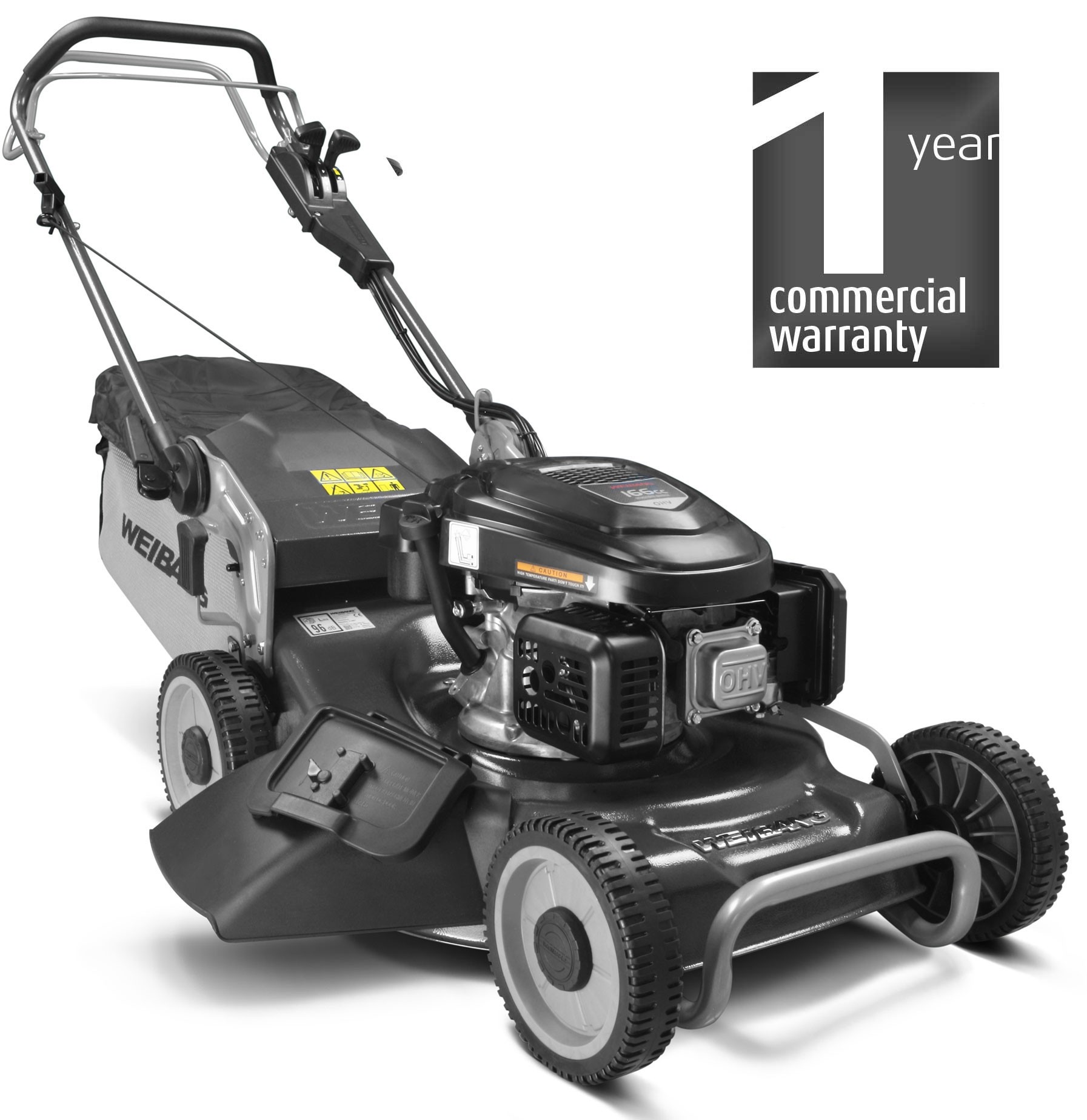 A multi-functional petrol lawnmower with variable speed wheel drive suitable for professional and domestic users